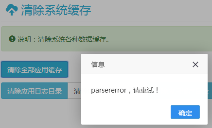 最新版本后臺(tái)清除系統(tǒng)緩存 報(bào)錯(cuò)