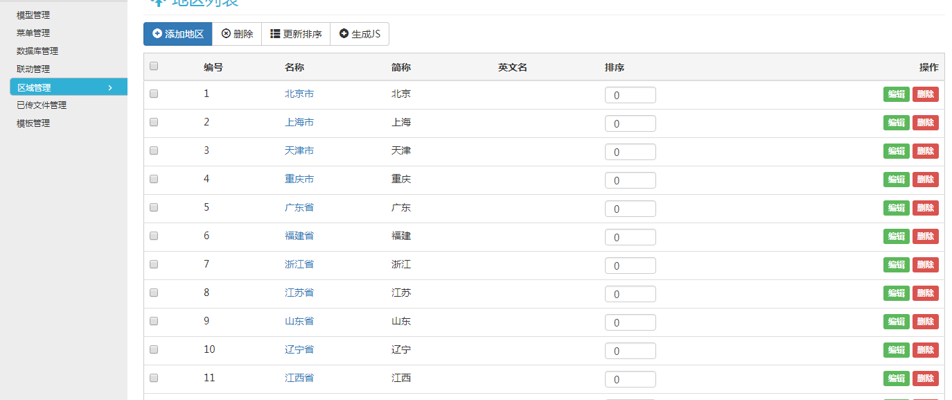 行云海后臺的區域聯動里的省市如何在模板頁面中調用