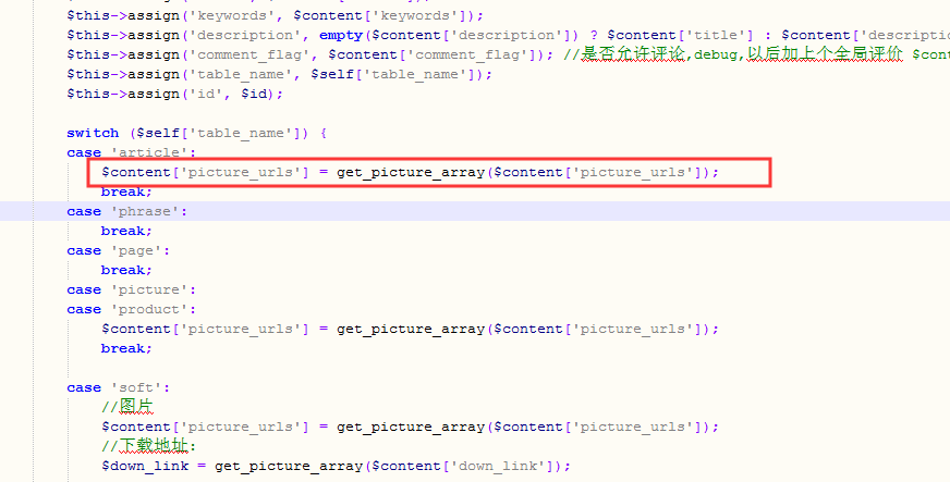 article已經加入picture_urls字段,并且也已經寫入數據,但是前臺詳情頁面就是空數據,控制器中也模仿產品模型的功能復制了一下如圖