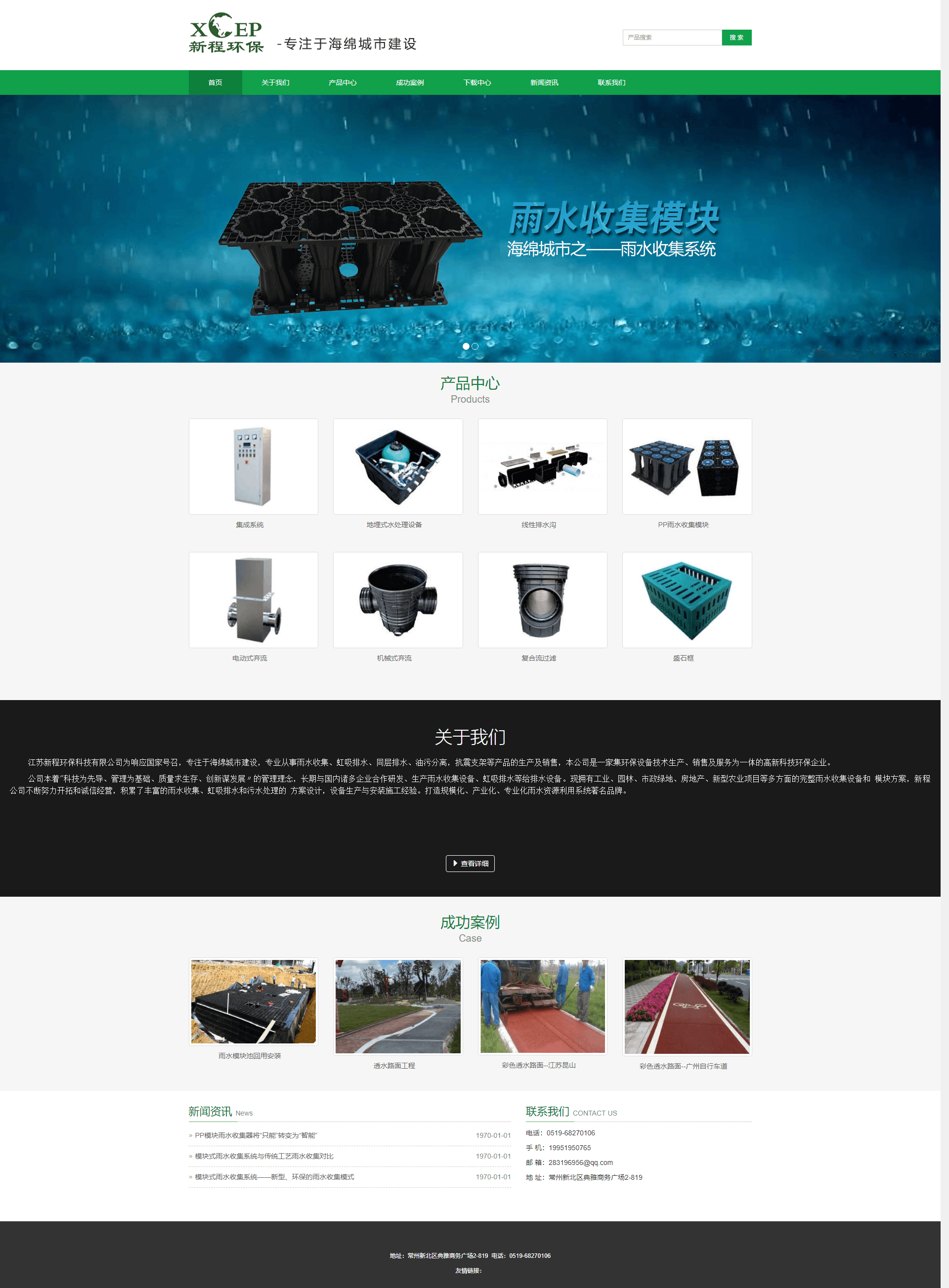 江蘇新程環保科技有限公司為響應國家號召,專注于海綿城市建設,專業從事雨水收集、虹吸排水、同層排水、油污分離,抗震支架等產品的生產及銷售,本公司是一家集環保設備技術生產、銷售及服務為一體的高新科技環保企業。